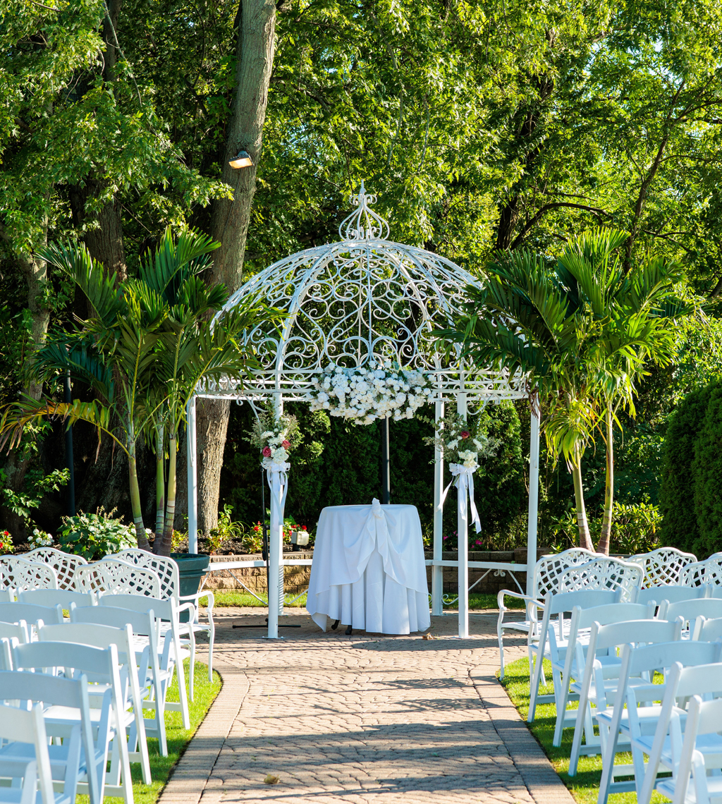 Outdoor Veranda & Gardens. Champagne welcome, patio cocktail hour, and scenic garden photo spots.